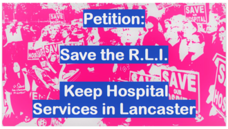 Save the RLI - Keep Hospital Services in LancasterOfficial government NHS plans contain a proposal to close both the Royal Lancaster Infirmary and the Royal Preston Hospital and replace them with a so called 'super-hospital' on a single site elsewhere. This proposal represents a serious threat to the future of full hospital provision in Lancaster and the large area of North Lancashire and South Cumbria the RLI serves. Likewise, the people of Preston and Central Lancashire will also risk the loss of properly accessible full local hospital services. Any increase in travel distances, especially for emergencies, is not acceptable. Both cities and surrounding areas need and deserve their own hospitals, each with a full range of services, with proper investment to upgrade these. Keep up to date with our campaign here: https://www.facebook.com/LancasterSaveOurHospitals1,056 of 2,000 SignaturesCreated by Lancaster Save Our Hospital Defend the NHS