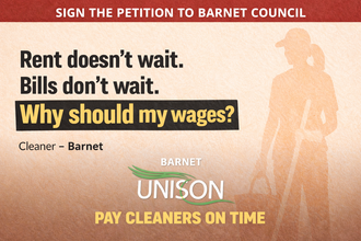 Pay Barnet’s cleaners on time — and bring cleaning back in-houseCleaners on Barnet’s council cleaning contract—employed by Norse Group—are among the lowest-paid workers delivering public services in one of the richest cities in the world. They keep our council buildings and schools clean, safe and running, yet they can be left waiting around 10–12 days after the end of the pay period to receive wages they have already earned. They are paid every four weeks, but the pay arrives nearly two weeks after the work period ends. For workers living week to week, that delay creates real hardship: rent, bills, food and travel costs don’t wait. It also creates a clear two-tier situation where outsourced staff can be treated differently from directly employed council staff. On top of that, many contractors delay implementing the new London Living Wage rate until 1 April even though it is announced in October—leaving low-paid workers waiting months for an uplift that is meant to reflect the real cost of living. Barnet Council should set fair standards for any contractor that wants to provide services in Barnet: pay workers on time and pay the Living Wage when it is announced. If outsourcing cannot deliver basic fairness and accountability, then cleaning should be brought back in-house at the earliest opportunity.7 of 100 SignaturesCreated by Barnet UNISON